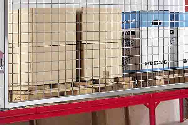 Ein Sturzschutzgitter benötigen Sie auf der Bühne wenn Sie Ware lagern die durch oder über das Geländer geschoben werden kann.