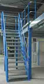 Treppenaufgänge mit Gitterroststufen und Knie und Handlauf, mit oder ohne Zwischenpodest, Stufenabstand max. 190 mm, Stufentiefe 250 mm