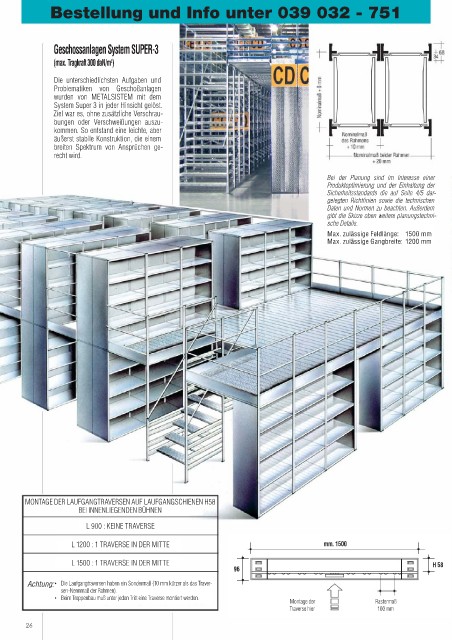 Achtung: • Die Laufgangtraversen haben ein Sondermaß (10 mm kürzer als das Traver-