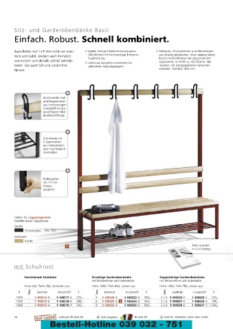 Basic-Bänke von C+P sind nicht nur prak- ■ Stabile Vierkant-Stahlrohrkonstruktion ■ Sitzleisten, Rückenlehnen und Hakenleisten