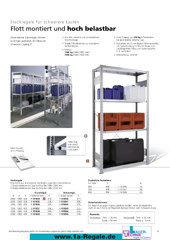60 Lieferzeit ➔ Seite 99 Alle Belastungsangaben gelten für handbeladene Regale bei gleichmäßig verteilter Last 61