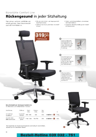 passt sich Ihrem Rücken an. ■ Fußkreuz Aluminium poliert bzw. Kunststoff ■ Zusätzliche Sitztiefenverstellung beim Modell