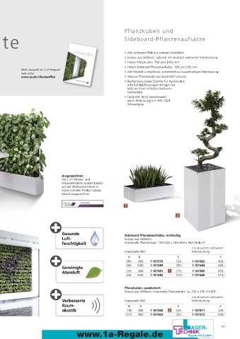 und Begrünung. In Anlehnung an das Prinzip des Biophilic Design bringen wir durch ■ Höhen Sideboard-Pflanzenaufsätze: 180 und 250 mm