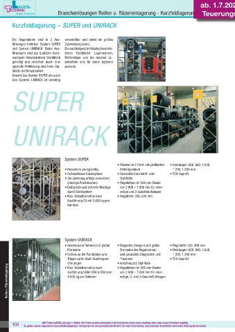 Kurzfeldlagerung – SUPER und UNIRACK ab. 1.7.2021 70,7 %