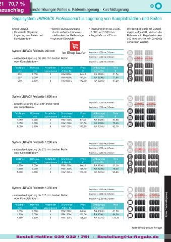 Preisbeispiel für Pkw Reifen- und Räderregal UNIRACK – satzweise Lagerung 1.050 3.000 4 RG 1030U 121,56 RA 1030U 75,46
