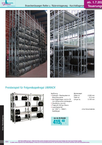 Preisbeispiel für Felgendoppelregal UNIRACK