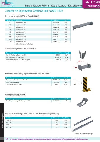 Kurzfeldlagerung – SUPER und UNIRACK ab. 1.7.2021 70,7 %