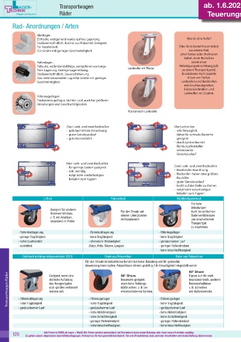 Zwei Lenk- und zwei Bockrollen Vier Lenkrollen
