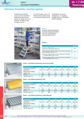 Aluminium-Podestleitern Teuerungszuschlag Arbeitspodeste