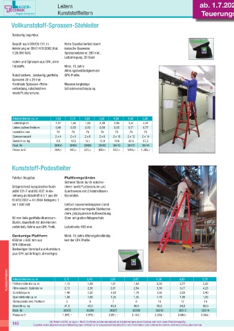 Kunststoffleitern Arbeitshöhe bis ca. m 3,15 3,40 3,60 3,85 4,30 4,80 5,25