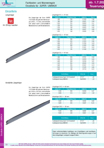 Die Längsträger der Serie SUPER Länge mm Tragkraft pro Paar Artikel-Nr. Preis 1