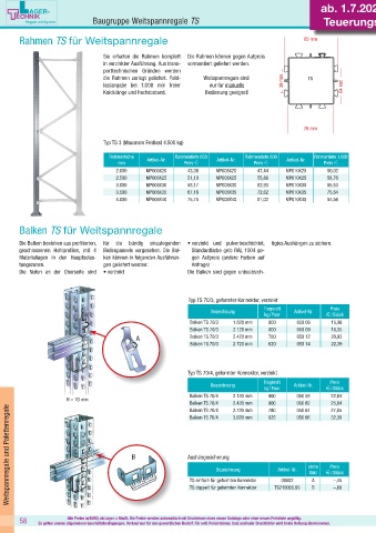Baugruppe Weitspannregale TS Teuerungszuschlag Baugruppen Palettenregale TS