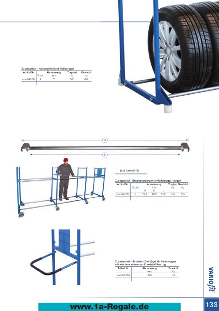 Zusatzartikel - Kunststoffkantenschutz für Etage für Reifenregal-/wagen Zusatzartikel - Schiebe-/ Ziehbügel für Reifenwagen
