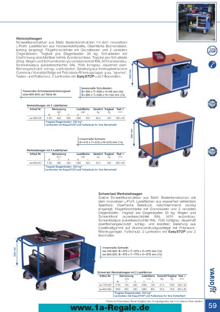 Artikel Nr. Abmessung Ladefläche Gewicht Traglast Rad ∅ Schrankfront pulverbeschichtet RAL 5010 enzianblau;