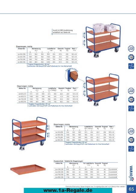 64 *Statische Flächenlast; Gesamttraglast des Transportgerätes darf nicht überschritten werden! www.1a-Regale.de 65