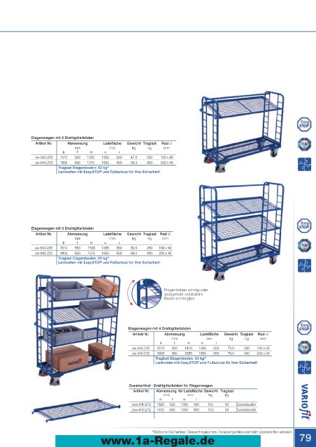 78 *Statische Flächenlast; Gesamttraglast des Transportgerätes darf nicht überschritten werden! www.1a-Regale.de 79