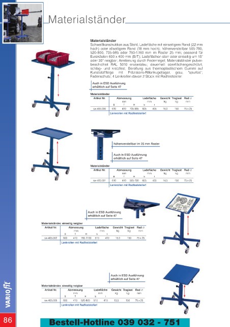Page 86 - Lagertechnik Transportgeräte Katalog